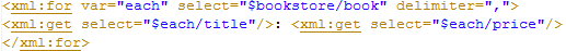 $bookstore/book, get the collection of all books, set the iterate object each, and output the title value.