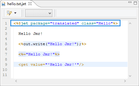 <%@jet .... %> ,用来定义编译信息的结构体,包含以下几个属性