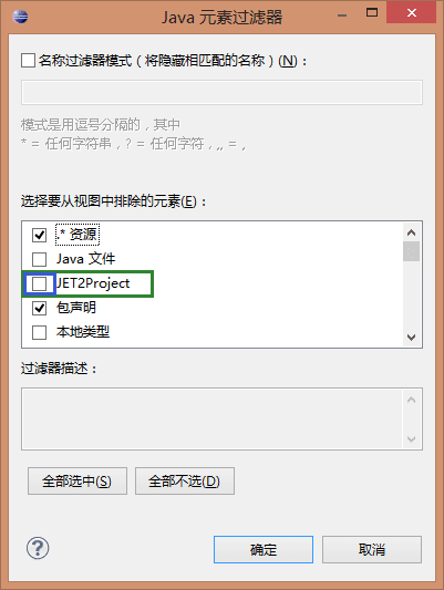 2)把JET2Project的勾选去掉,确定